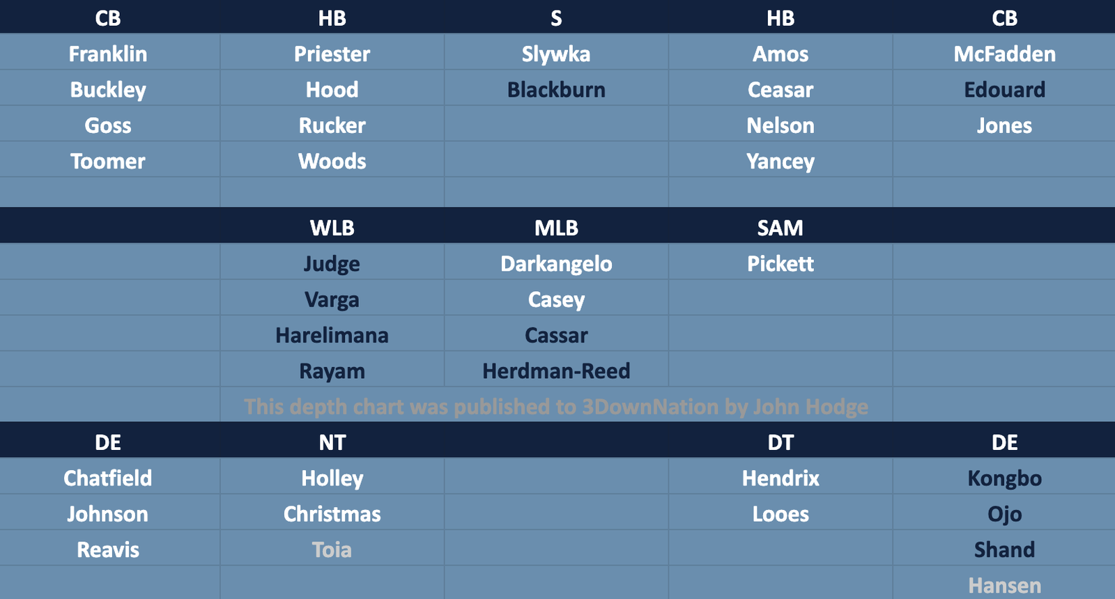The team’s major departure in free agency was Wynton McManis, who signed with the Tiger-Cats. The two-time All-CFL selection should be replaced by Isaac Darkangelo, who started five games last season and made 60 defensive tackles, 22 special teams tackles, four forced fumbles, and two sacks. Cameron Judge should remain the starter at weak-side linebacker ahead of solid group of depth players that includes Jack Cassar and Ryder Varga.